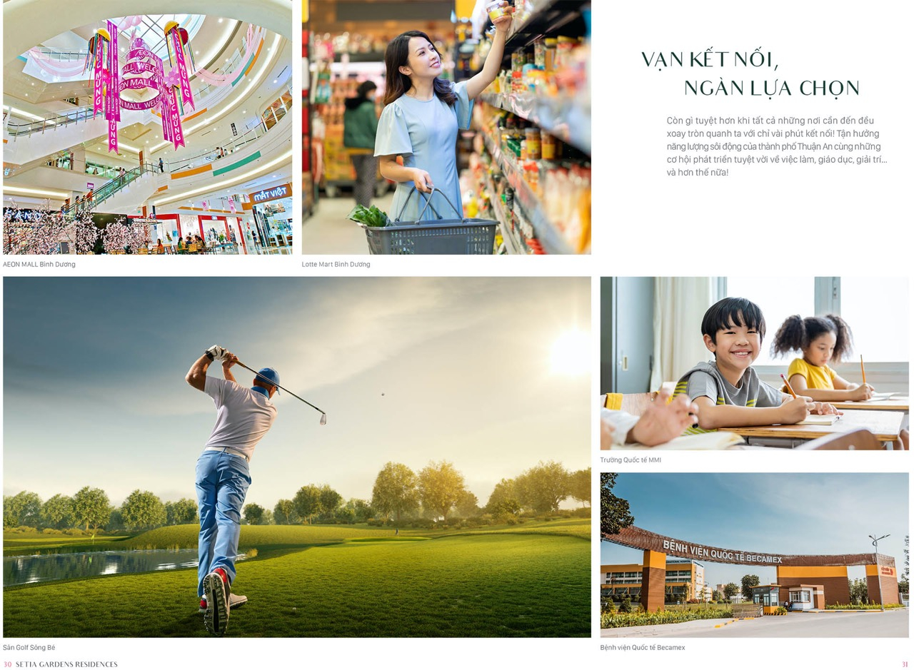 Không chỉ thuận tiện về giao thông, dự án còn nằm giữa khu vực có hạ tầng phát triển đồng bộ, bao quanh là hệ thống tiện ích cao cấp: Aeon Mall, Lotte Mart, bệnh viện quốc tế, trường học các cấp, khu công nghiệp VSIP, Việt Hương… Tất cả tạo nên một mạng lưới kết nối toàn diện, giúp cư dân vừa thuận lợi an cư, vừa dễ dàng khai thác tiềm năng đầu tư.