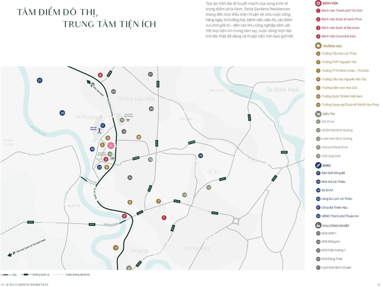 - Bao quanh dự án là loạt khu công nghiệp lớn như VSIP 1, Sóng Thần, Việt Hương, Đồng An, Bình Chuẩn – trung tâm việc làm, giao thương và phát triển bền vững của Bình Dương.